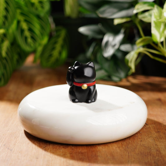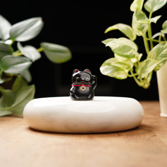 Black Ceramic Maneki Neko-Lucky Cat For Protection From Evil