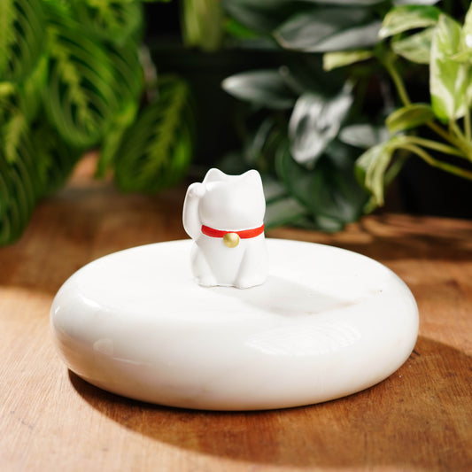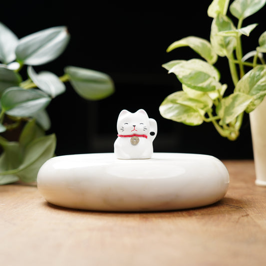 White Concrete Maneki Neko-Lucky Cat For Happiness