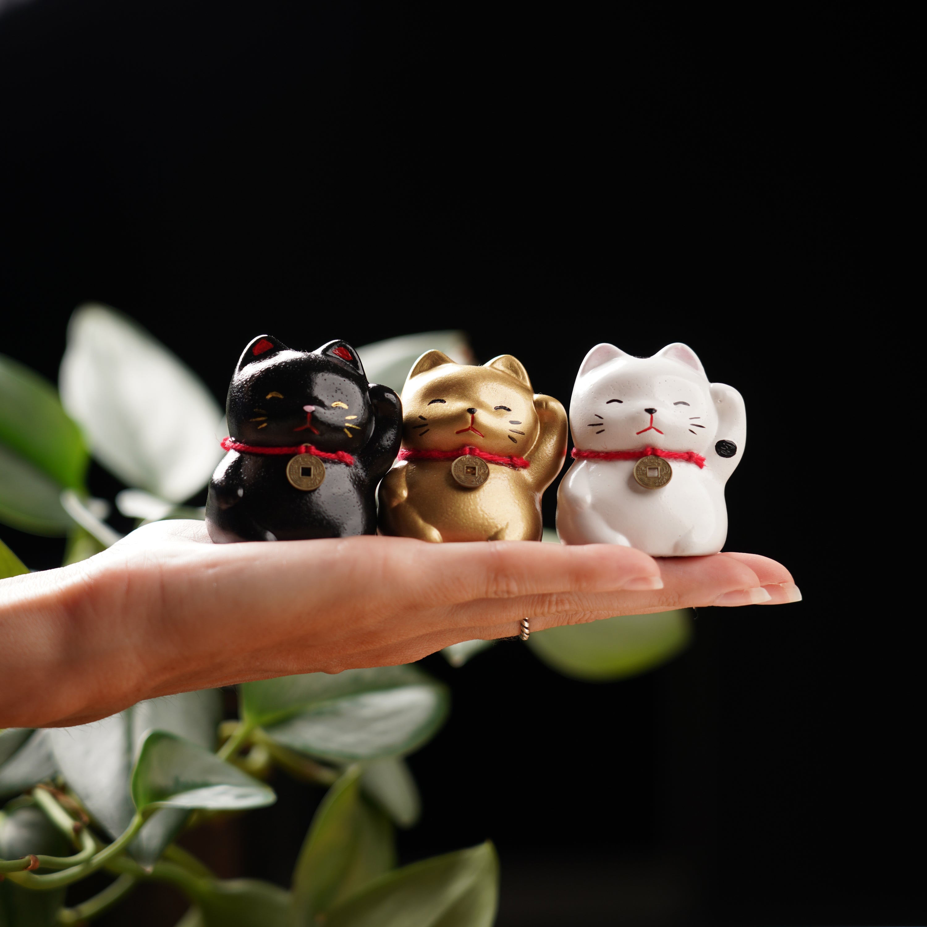 Concrete Maneki Neko Set - Lucky Cat Set For Luck, Wealth, and Prosperity