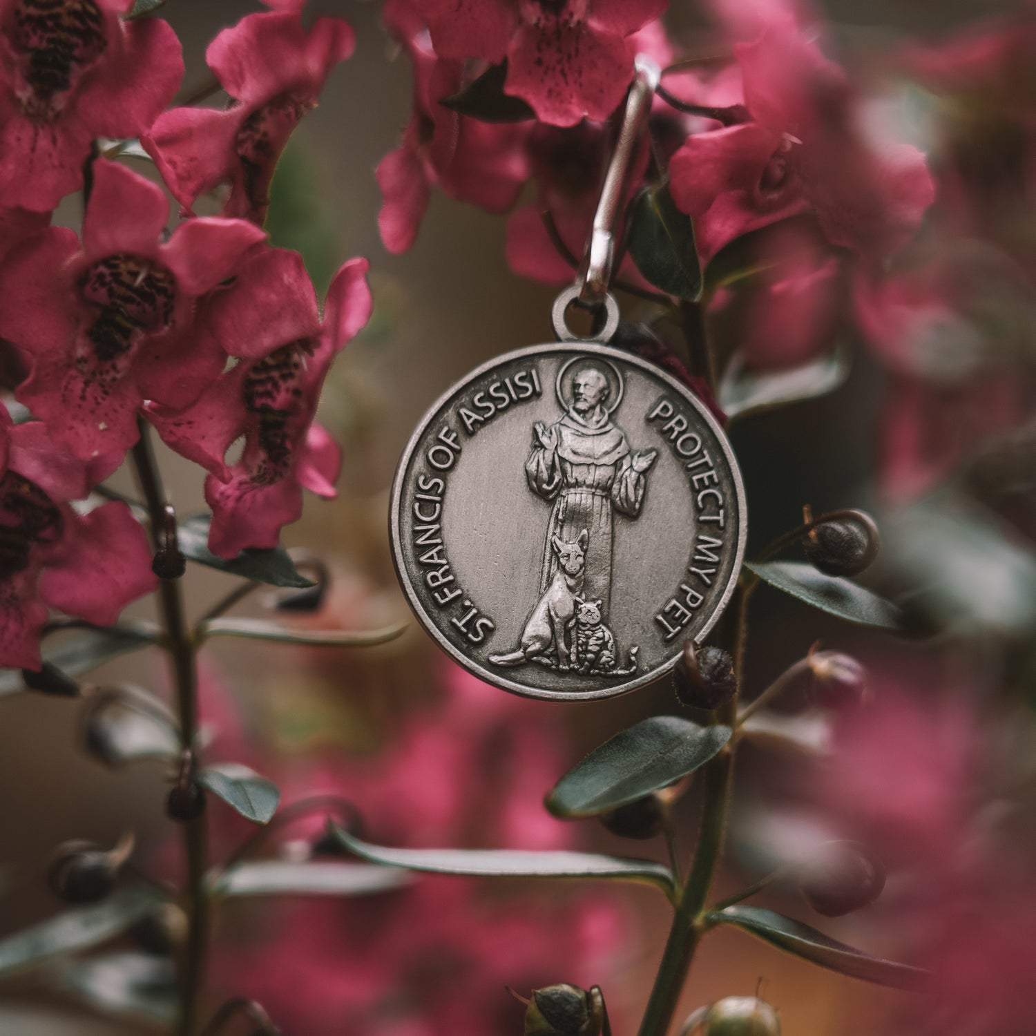 Saint Francis of Assisi is the patron saint of animals, the environment, and traders. Placing a St. Francis of Assisi Medal on your beloved pet's collar is believed to offer protection and good luck for your fur baby.
