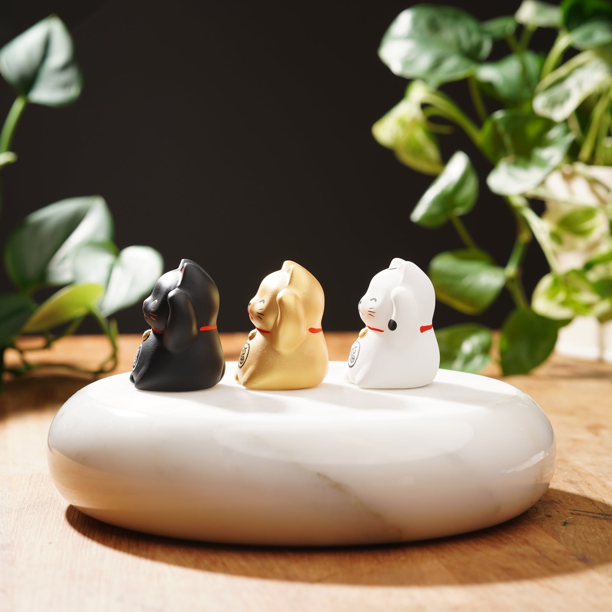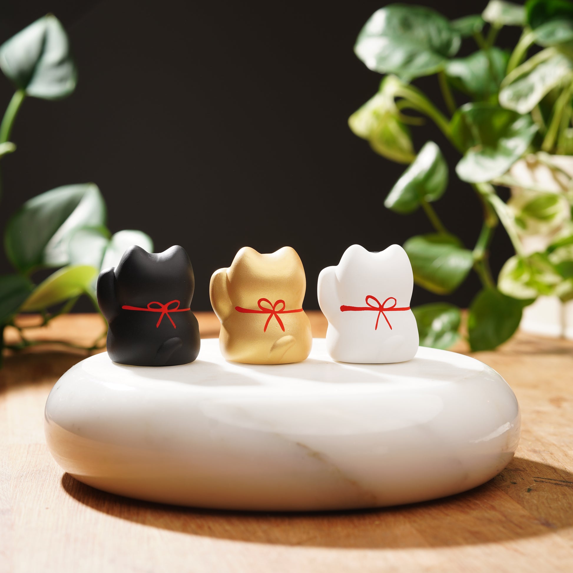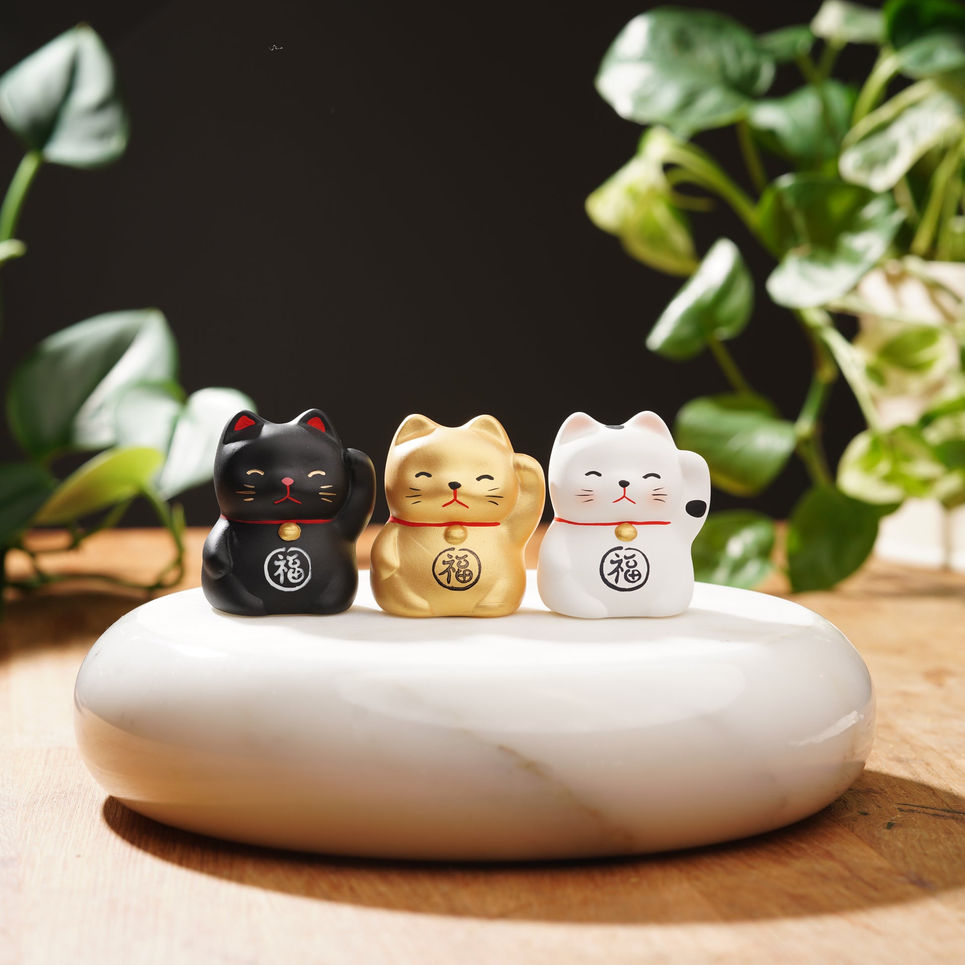 Maneki Neko or as we like to call these cute felines, Lucky Cats have a paw raised as to wave in good fortune for its owners. Each color variation has a special meaning...black will ward off evil spirits, gold will bring wealth and prosperity, and white will bring happiness, purity, and positivity.