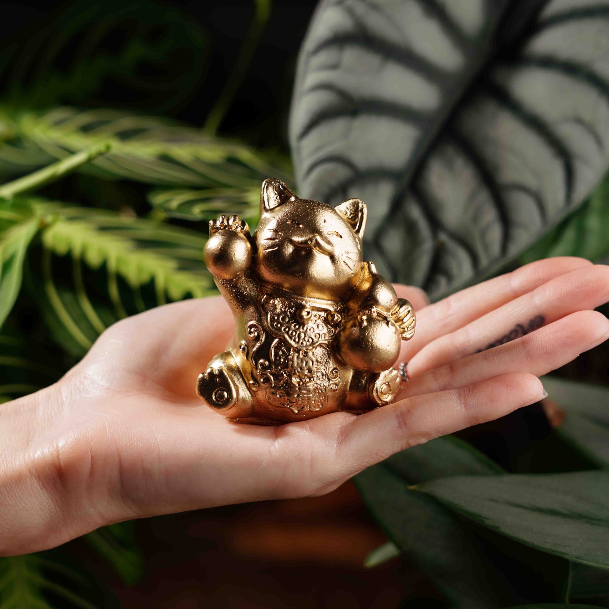 Gold Concrete Lucky Cat - Maneki Neko For Wealth and Luck