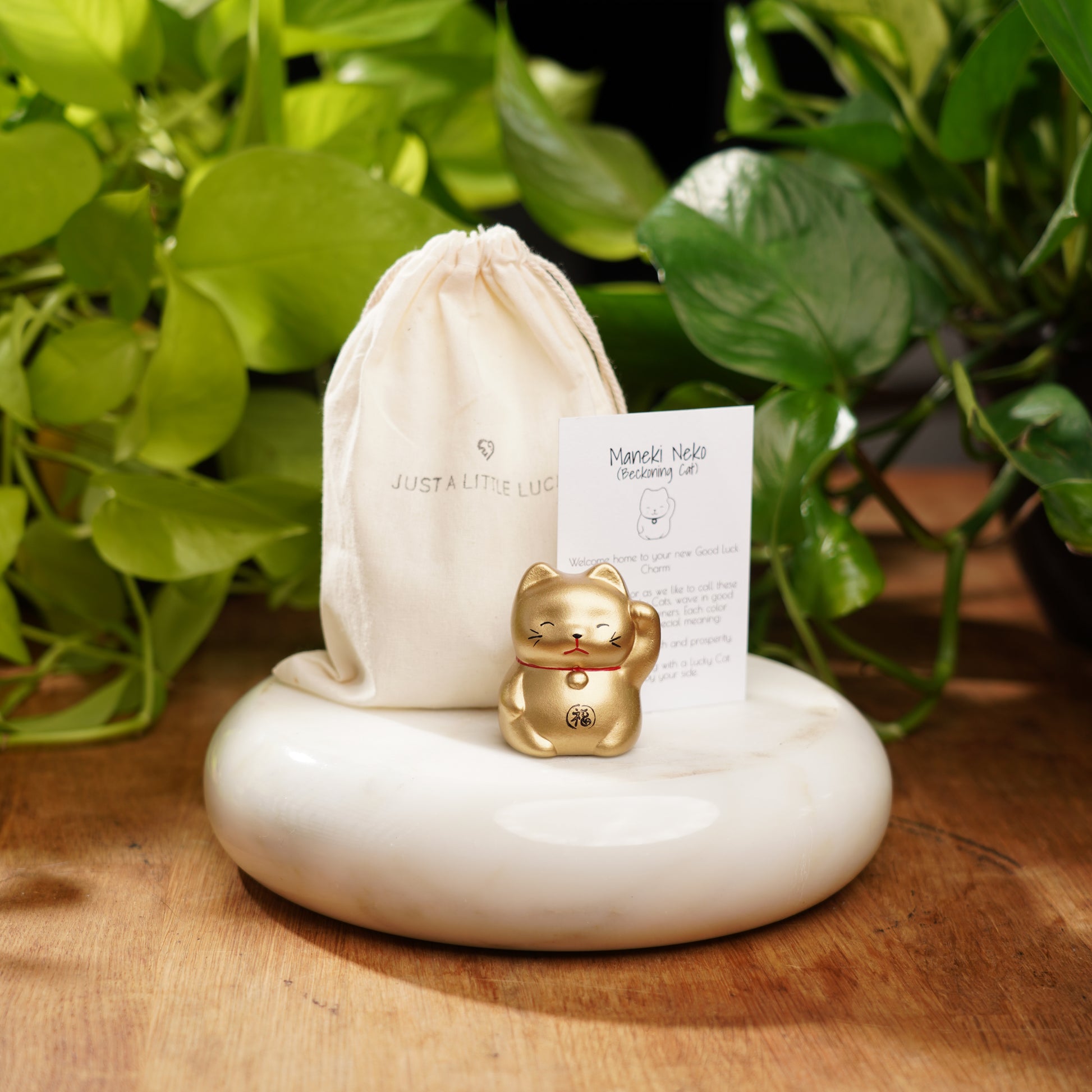 Our most popular little lucky cat with an upgrade! Made of concrete now and hand painted our Maneki Neko or as we like to call these cute felines, Lucky Cats have a paw raised as to wave in good fortune for its owners. Each color variation has a special meaning...gold will bring wealth and prosperity. This adorable cat is perfect for any and all feline lovers. This cutie may be small but sure brings a lot of luck!
