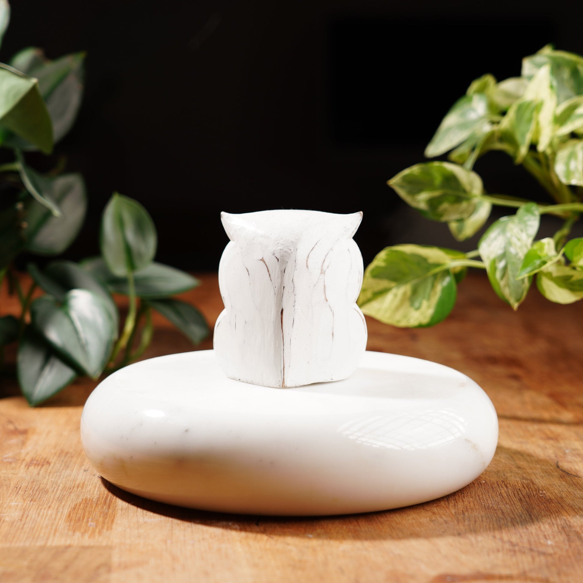 These adorable hand-carved owls are made of a fast-growing and sustainable garden wood. They are each lightweight and beautifully painted white with gold accents.