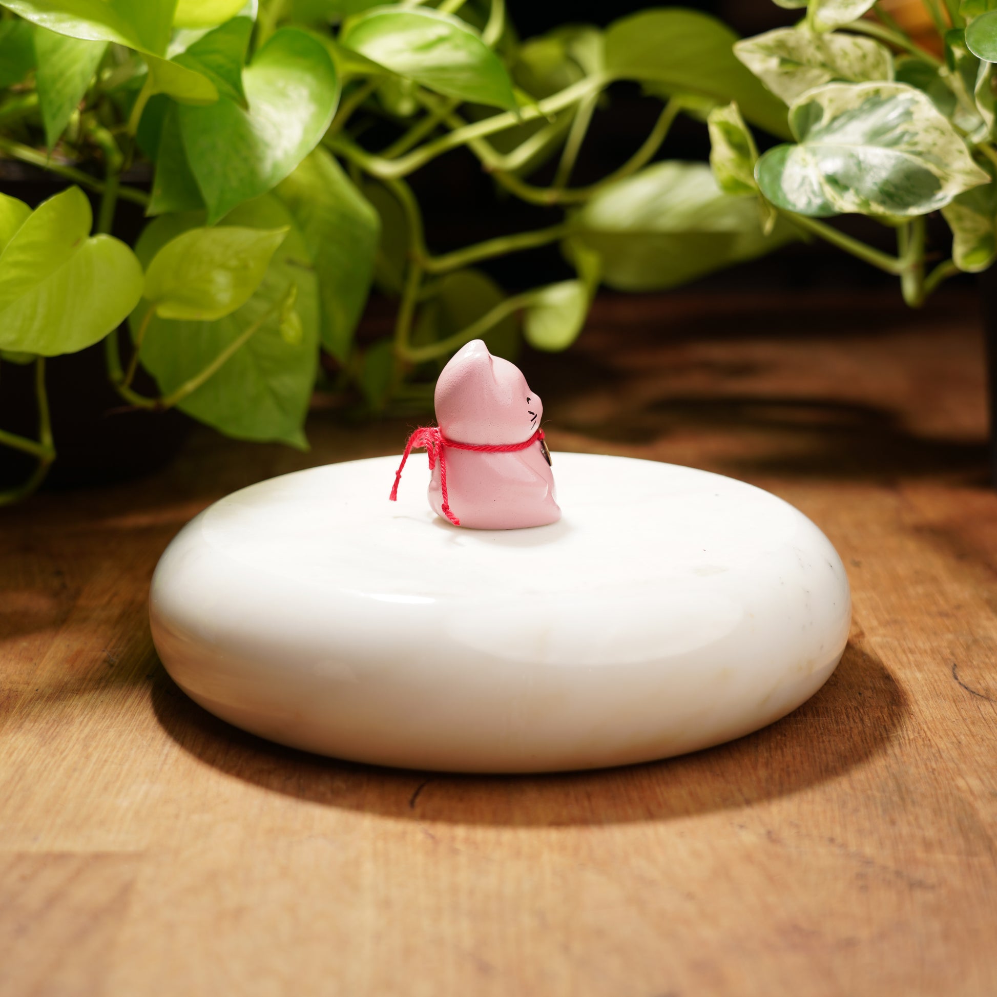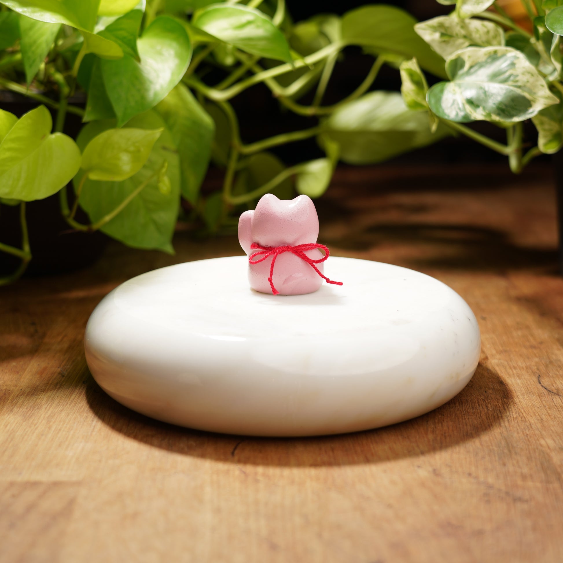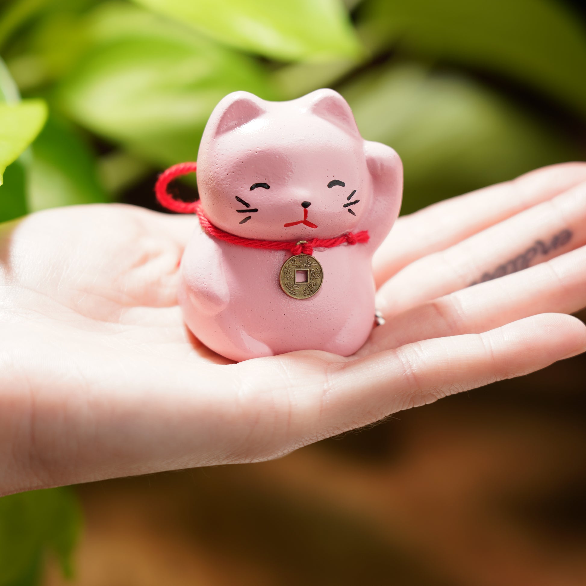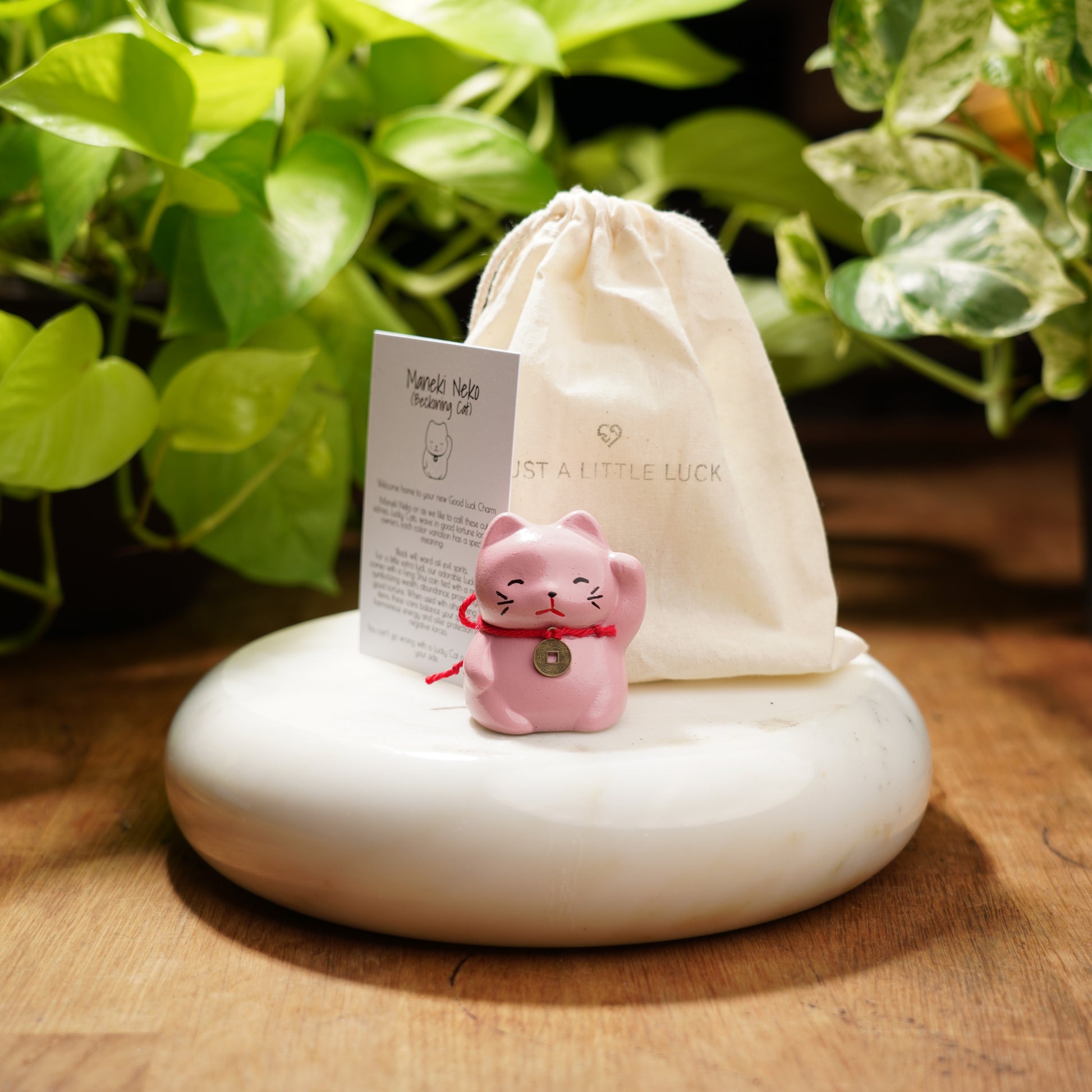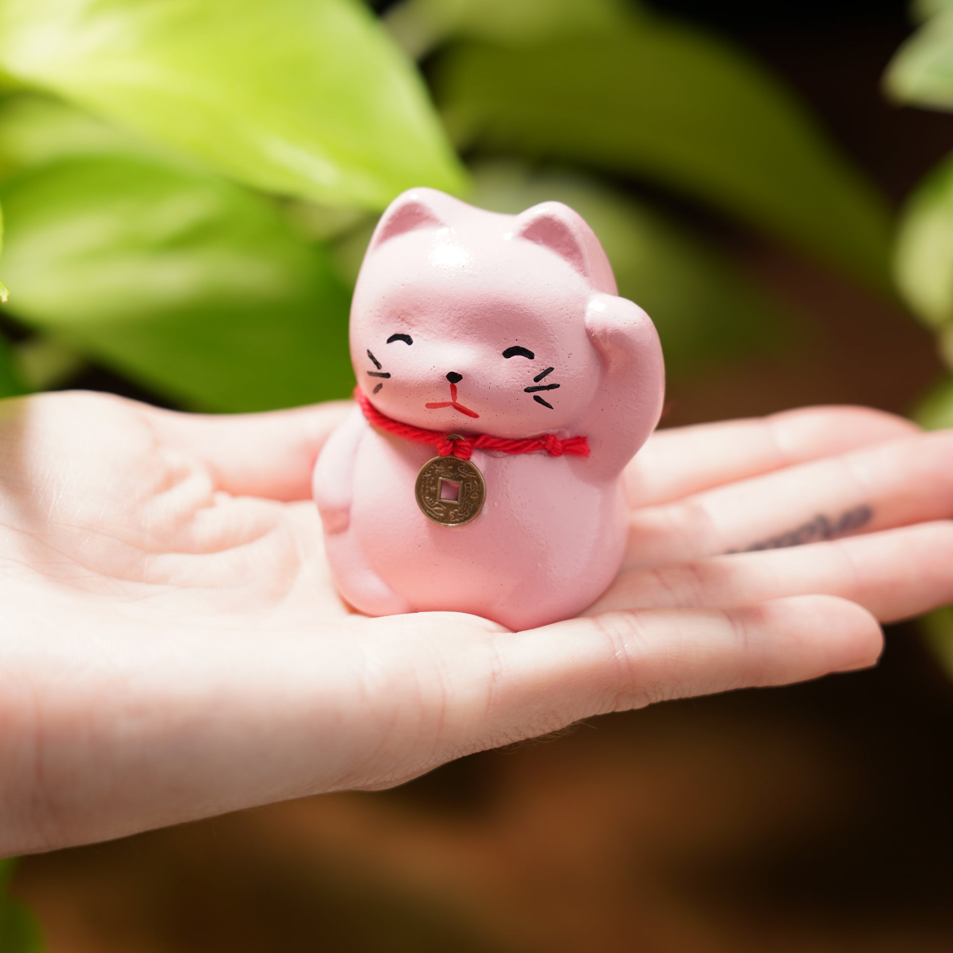 Maneki Neko or as we like to call these cute felines, Lucky Cats have a paw raised as to wave in good fortune for its owners. Each color variation has a special meaning...pink will bring love, romance, and good luck! This adorable cat is perfect for any and all feline lovers. This cutie may be small but sure brings a lot of luck!